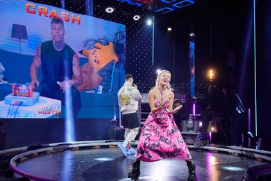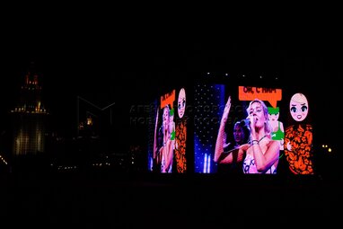 Певица Клава Кока на выступлении городского медиафестиваля «Твоя Москва», который организует телеканал «Москва 24» с 22 по 24 октября 2021 года, на Университетской площади перед главным зданием МГУ имени Ломоносова.