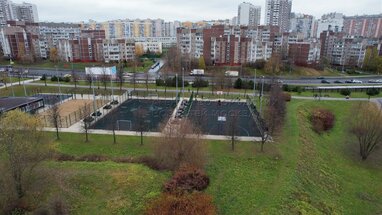 Вид с квадрокоптера на ландшафтный парк «Митино» на северо-западе столицы во время режима нерабочих дней