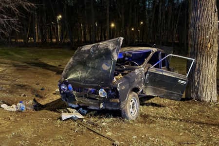 Последствия ДТП с участием легкового автомобиля на ул. Кузьминская вдоль парка Двенадцати Лучей.