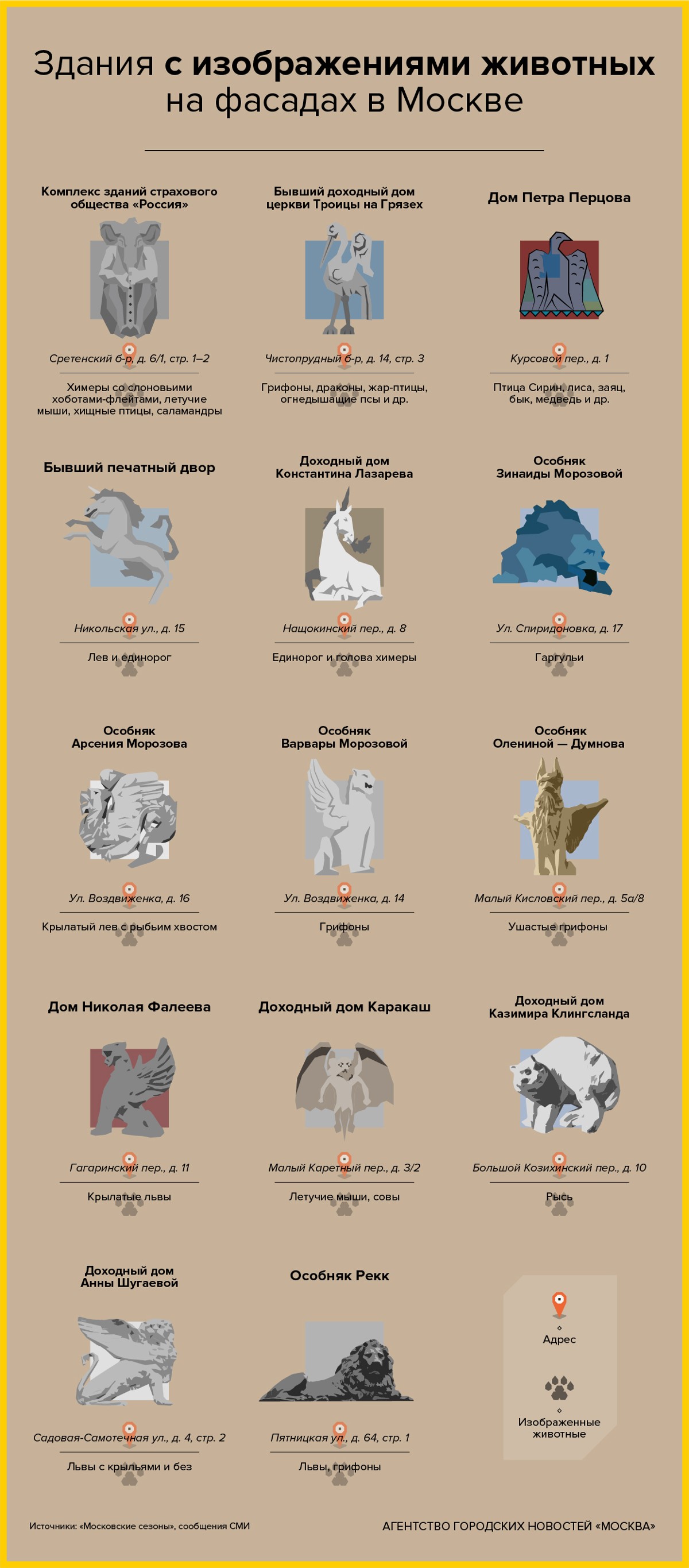Здания с изображениями животных на фасадах в Москве.