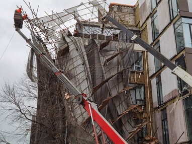 Работа оперативных служб на месте обрушения строительных лесов в центре Москвы