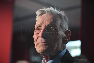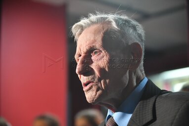 96-летний советский фронтовик Николай Орлов во время вручения ему награды Итальянского движения Сопротивления - медали «Гарибальдийская звезда» (или медаль «Гарибальди») в преддверии Дня Героев Отечества в Красногорском филиале Музея Победы.
