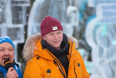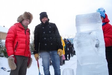 Президент фестиваля «Ледовая Москва», актер, режиссер Александр Ковтунец (слева) и актер Роман Курцын во время VII новогоднего фестиваля «Ледовая Москва. В кругу семьи».