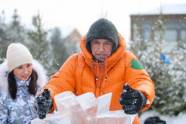 Актер Владимир Сычев и блогер-миллионник Мария Анисимова во время VII новогоднего фестиваля «Ледовая Москва. В кругу семьи».