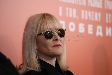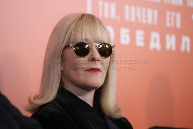 Сокуратор, популяризатор советской рок-музыки в США в 1980-е – 1990-е годы Джоанна Стингрей во время пресс-конференции и выставки-байопик «Виктор Цой. Путь героя» в Центральном выставочном зале «Манеж» к 60-летию со дня рождения музыканта.