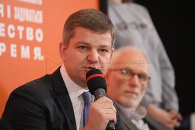 Генеральный директор Президентского фонда культурных инициатив Роман Карманов во время пресс-конференции и выставки-байопик «Виктор Цой. Путь героя» в Центральном выставочном зале «Манеж» к 60-летию со дня рождения музыканта.
