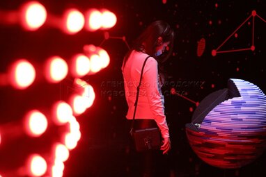 Автор идеи и продюсер выставки «Виктор Цой. Путь героя» Агния Стерлигова во время пресс-конференции и выставки-байопик «Виктор Цой. Путь героя» в Центральном выставочном зале «Манеж» к 60-летию со дня рождения музыканта.