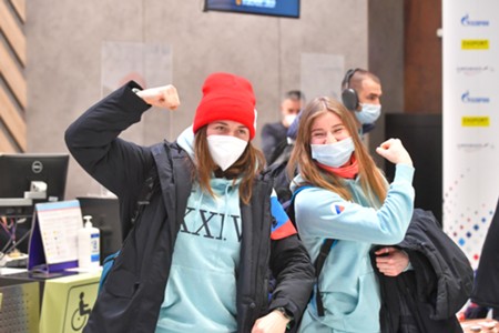 Российские спортсмены в аэропорту Шереметьево перед вылетом на зимнюю Олимпиаду-2022 в Пекине