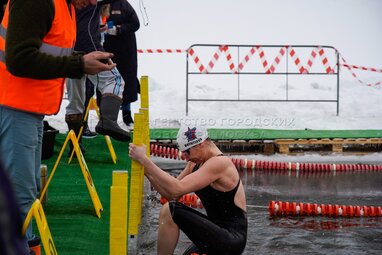 Первый открытый чемпионат Москвы по зимнему плаванию на Гребном канале в Москве.