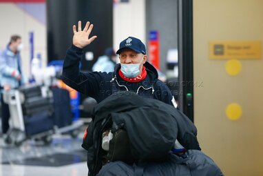 Российский спортсмен, член сборной России (команда ОКР) по сноуборду Вик Уайлд, завоевавший бронзовую медаль на XXIV зимних Олимпийских играх в Пекине, в Международном аэропорту Шереметьево.