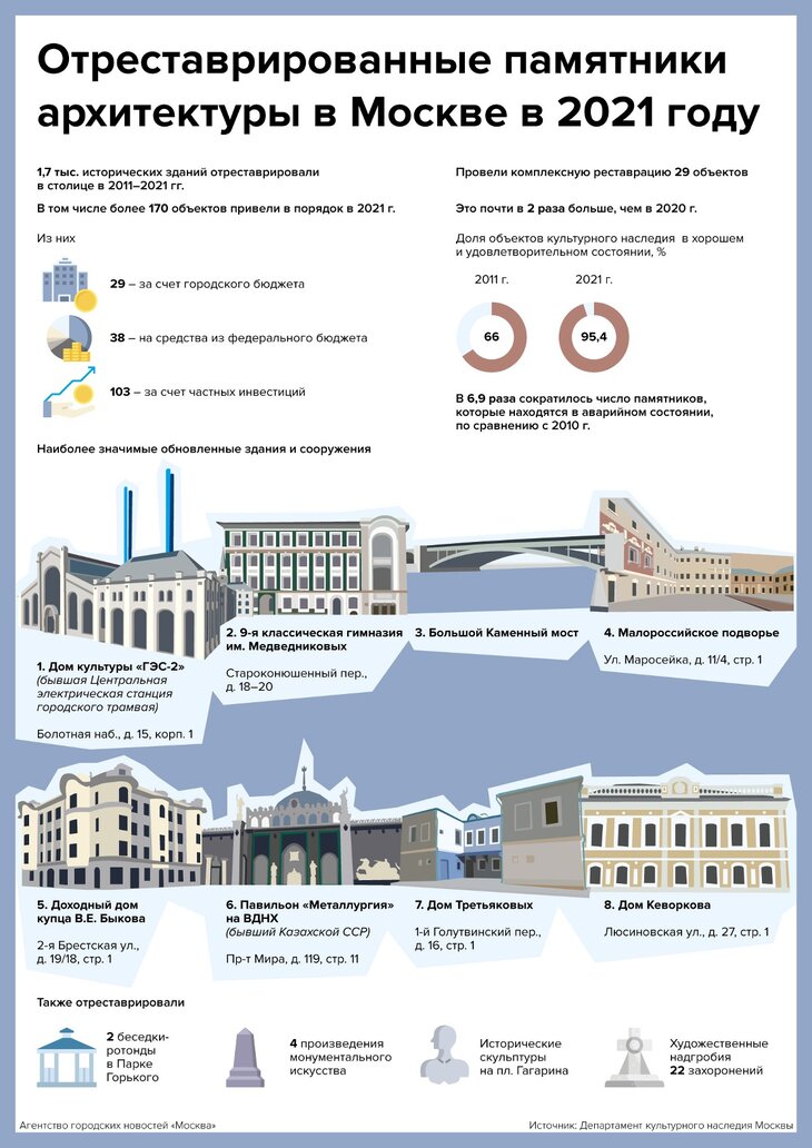 Отреставрированные памятники архитектуры в Москве в 2021 году.