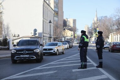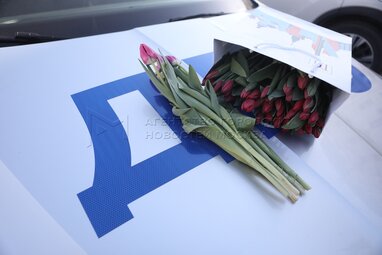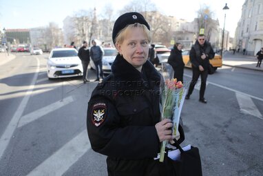Акция ГИБДД «Цветы для автоледи» в центре Москвы