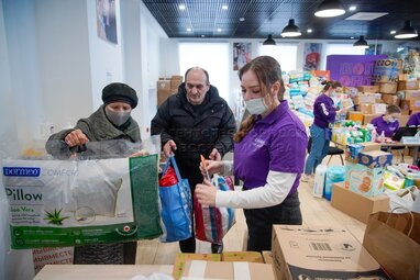 Штаб по сбору гуманитарной помощи для беженцев из ДНР и ЛНР на Ленинградском проспекте