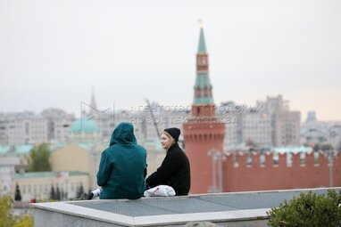 Повседневная жизнь в Москве. Горожане в парке «Зарядье».