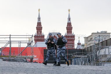 Повседневная жизнь в Москве. Военнослужащие на Красной площади.