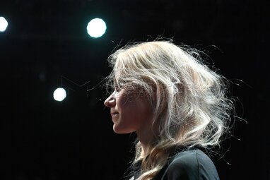 Актриса Екатерина Лисицына в роли Ангелины во время показа спектакля «Ангелы вышли покурить» в театре «Школа современной пьесы».