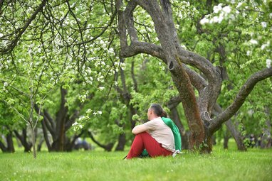 Цветение яблонь и сирени на территории Московского государственного объединенного музея-заповедника «Коломенское».