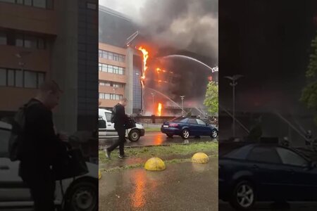 Тушение пожара в бизнес-центре «Гранд Сетунь Плаза» на западе Москвы