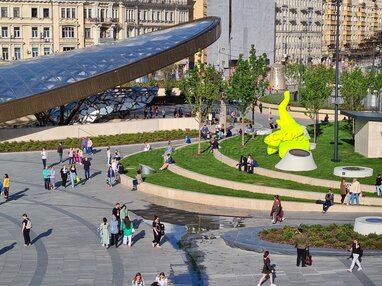 Отдых москвичей и гостей столицы в новом парке на Павелецкой площади