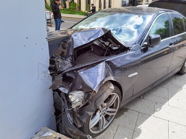 Последствия ДТП с участием двух автомобилей на Покровском бульваре, где BMW въехал в здание