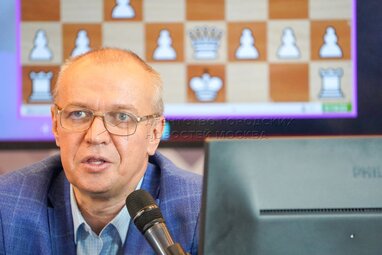 Телеведущий, комментатор Дмитрий Губерниев во время турнира звезд на Международном шахматном форуме Moscow Open 2022 при поддержке столичного департамента спорта, во Дворце гимнастики Ирины Винер-Усмановой.