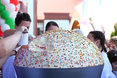 Мороженое весом в 100 кг, которое поставило мировой рекорд в изготовлении самого большого десерта из мороженого в рамках фестиваля «Лето. Мороженое. ВДНХ».