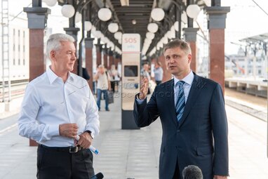 Сергей Собянин во время запуска движения поездов на центральном участке МЦД-2 «Площадь трех вокзалов»