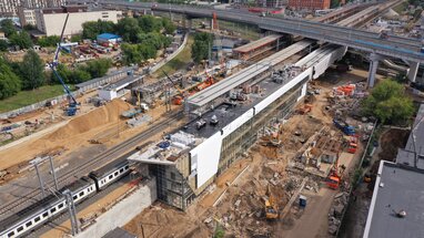 Вид с квадрокоптера на строительство ТПУ «Окружная» на севере Москвы.