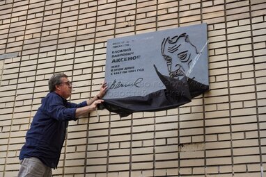 Торжественное открытие памятной доски драматургу Василию Аксенову по адресу: ул. Красноармейская, д. 21, где он жил в 1967-1981 годы.