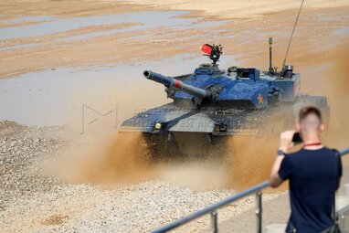 Танк Type–96B команды военнослужащих Китая во время танкового биатлона в рамках VIII Армейских международных игр (АрМИ-2022) на военном полигоне «Алабино» в Подмосковье.