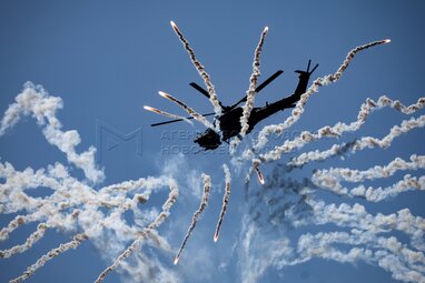 Одиночный пилотаж вертолета Ми-28Н во время летной программы форума «Армия-2022» на аэродроме Кубинка.