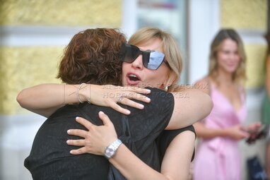 Актриса Ирина Таранник (справа) во время сбора труппы Российского академического молодежного театра.