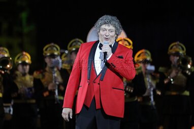 Заслуженный артист России Сергей Маховиков во время вечернего представления в рамках пятого дня фестиваля «Спасская башня - 2022» на Красной площади.