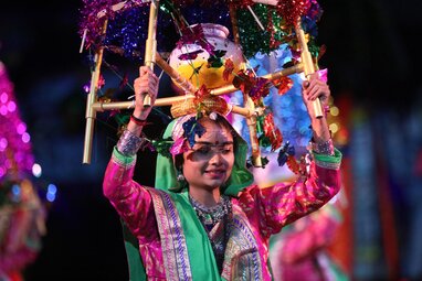 Исполнительский художественный коллектив Индии «Panghat» во время вечернего представления в рамках пятого дня фестиваля «Спасская башня - 2022» на Красной площади.