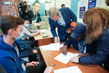 Иностранные наблюдатели во время голосования в Москве на референдумах по вопросу вхождения ДНР, ЛНР, Херсонской и Запорожской областей в состав России.