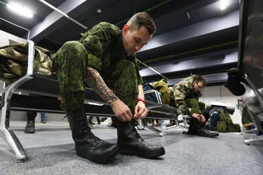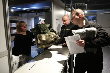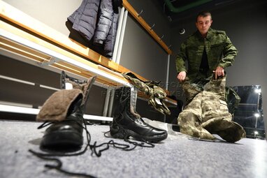 Выдача обмундирования на временном пункте мобилизации в Музее Москвы