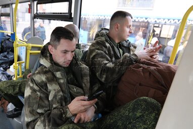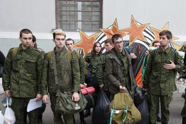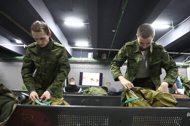 Обстановка на временном пункте мобилизации в Музее Москвы.