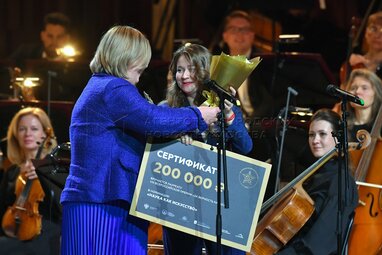 Директор Благотворительного фонда «Искусство, наука и спорт» Фатима Мухомеджан на торжественной церемонии вручения VIII Всероссийской премии «За верность науке» в Московском концертном зале «Зарядье».