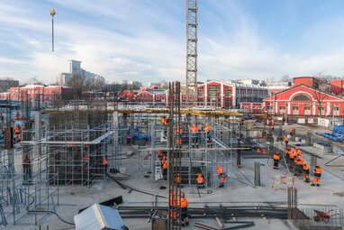 Ход строительства нового комплекса детской городской клинической больницы святого Владимира. Фото: Максим Мишин, пресс-служба мэра и правительства Москвы.