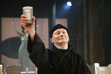 Актер Юрий Цокуров в роли Семена Семеновича Подсекальникова во время показа премьерного спектакля «Самоубийца» в Камерном зале Симоновской сцены Театра имени Вахтангова.