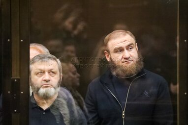 Бывший советник гендиректора «Газпром межрегионгаз» Рауль Арашуков (слева) и его сын экс-сенатор от Карачаево-Черкесской Республики Рауф Арашуков, обвиняемые в создании преступного сообщества во время оглашения приговора в Мосгорсуде.
