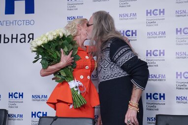 Заслуженная артистка России Анастасия Волочкова во время презентации патриотической песни.