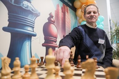 Участник общегородского турнира по быстрым шахматам Анатолий Непрокин во время финала общегородского шахматного турнира в центре московского долголетия «Котловка».
