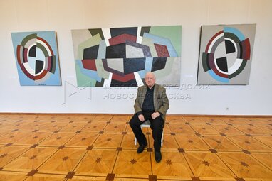 Президент ассоциации художников театра, кино и телевидения Москвы Борис Мессерер во время открытия своей выставки живописи и графики «Темы и вариации» в Российской академии художеств.