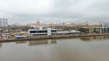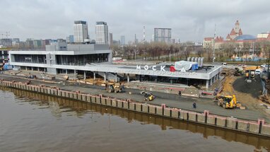 Вид с квадрокоптера на ход реконструкции Южного речного вокзала в столице.