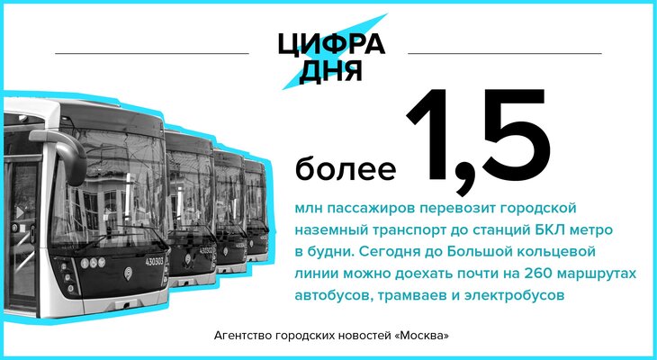 Цифра дня 7 апреля: Более 1,5 млн пассажиров перевозит наземный транспорт до станций БКЛ метро в будни.