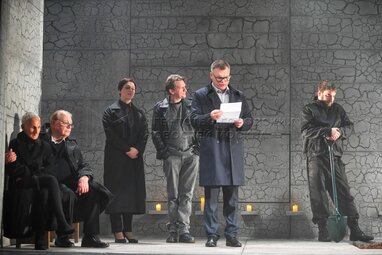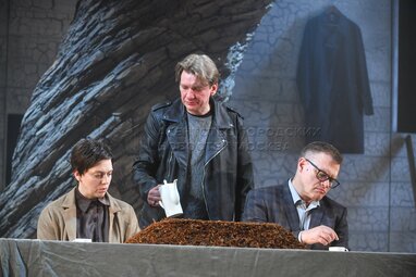 Пресс-показ спектакля «Разговоры после погребения» по одноименной пьесе французской актрисы и драматурга Ясмины Реза в постановке Вадима Дубровицкого в новом театральном пространстве «LA’Театра».