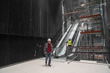 Заместитель директора по капитальному строительству АО «Атомэнергопром» Александр Табачников на осмотре хода строительства павильона «Атом» на территории ВДНХ.