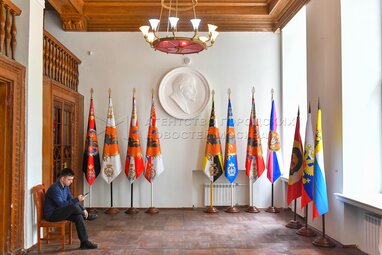 Член Геральдического совета при президенте РФ, заслуженный работник культуры РФ Олег Кузнецов на открытии выставки «Символы Москвы: история и современность» в библиотеке №3 имени Николая Добролюбова.
