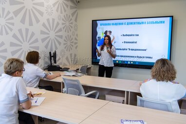 Симуляционный центр обучения навыкам профессионального ухода на базе научно-практического геронтопсихиатрического центра в Южнопортовом районе. Фото: Владимир Новиков, пресс-служба мэра и правительства Москвы.